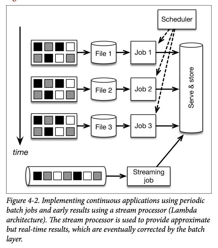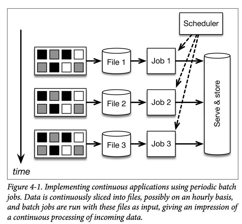 The underlying problem with this approach is that time is only managed implicitly by the part of the system that creates the small jobs. Frameworks like Spark Streaming mitigate some of the fragility, but not entirely, and the sensitivity to timing relative to batches still leads to poor latency and a user experience where one needs to think a lot about performance in the application code.