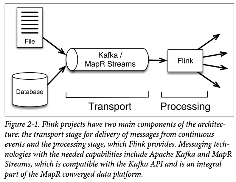 For now, the key is to recognize that it is the interplay of transport and processing that allows a system like Flink to provide guarantees about correct processing and to do âtime travel,â which refers to the ability to reprocess data.