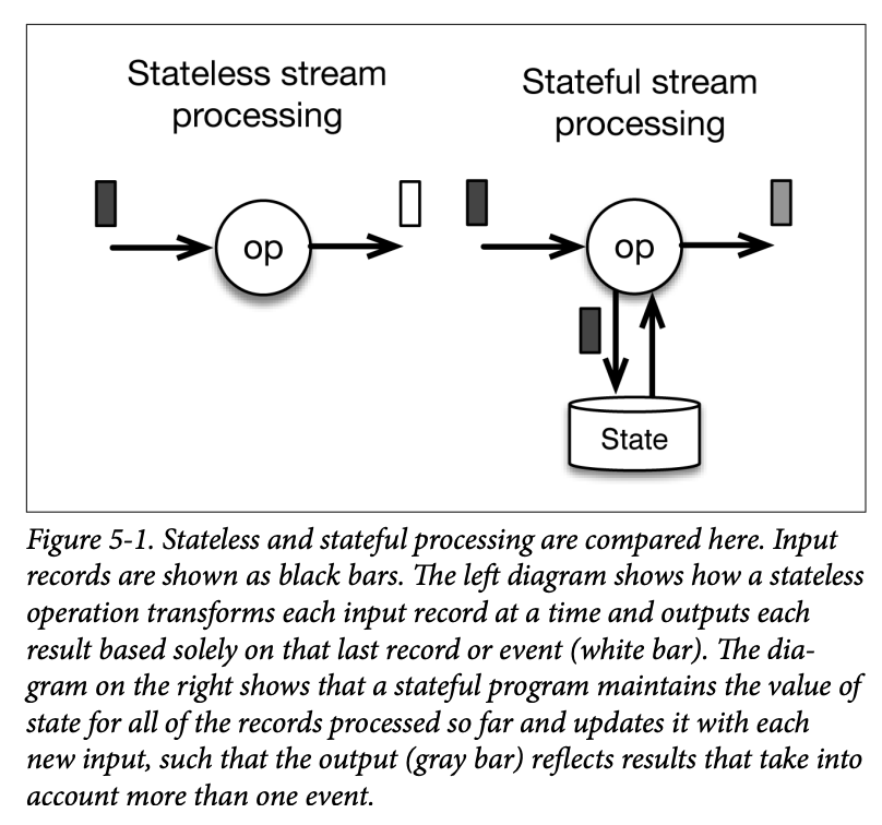 Figure 5-1 exemplifies the main difference between stateless and stateful stream processing.