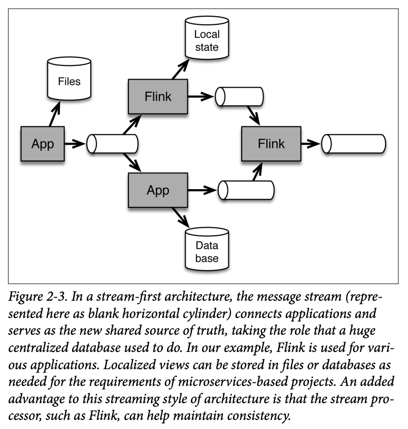 Another problem of this traditional architecture stems from trying to maintain the current âstate of the worldâ consistently across a large, distributed system. At scale, it becomes harder and harder to maintain such precise synchronization; stream-first architectures allow us to relax the requirements so that we only need to maintain much more localized consistency.