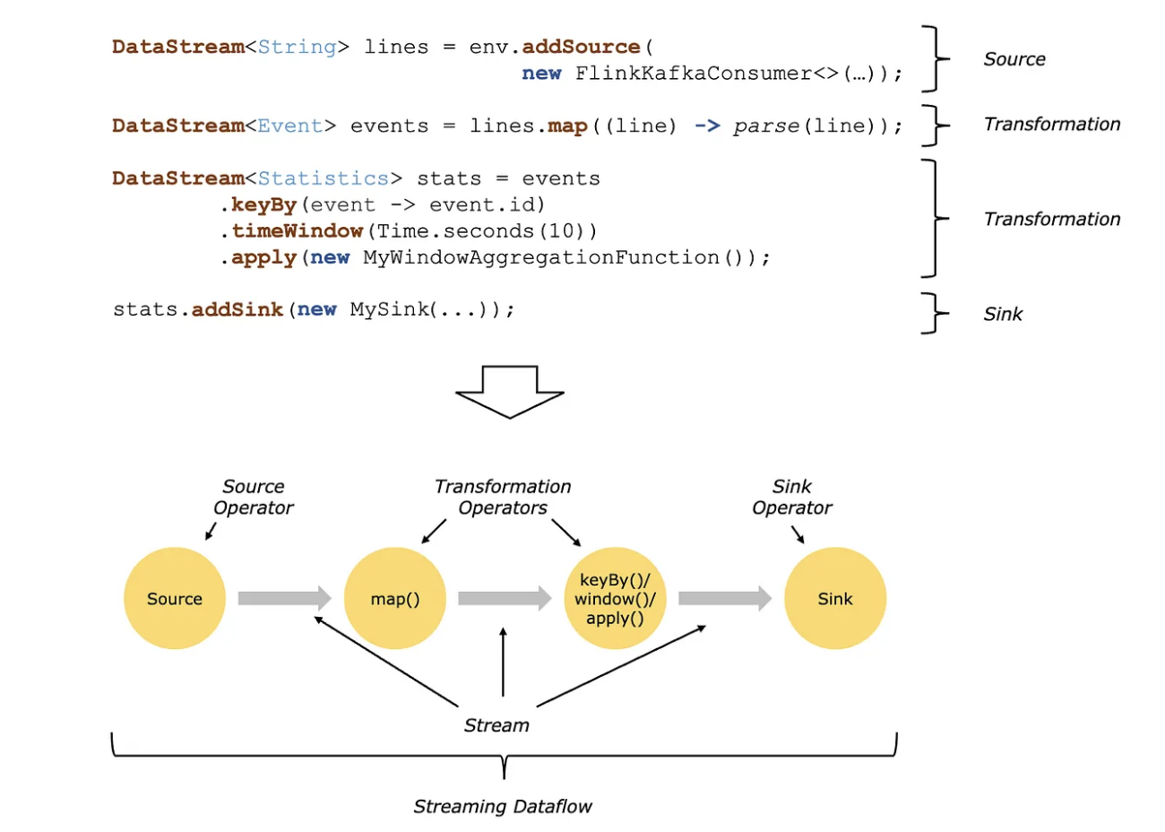 In above image, we are converting the input data stream to a new stream by processing/transforming/filtering it using different functions, all these functions above are classified as “Operators” in Flink.